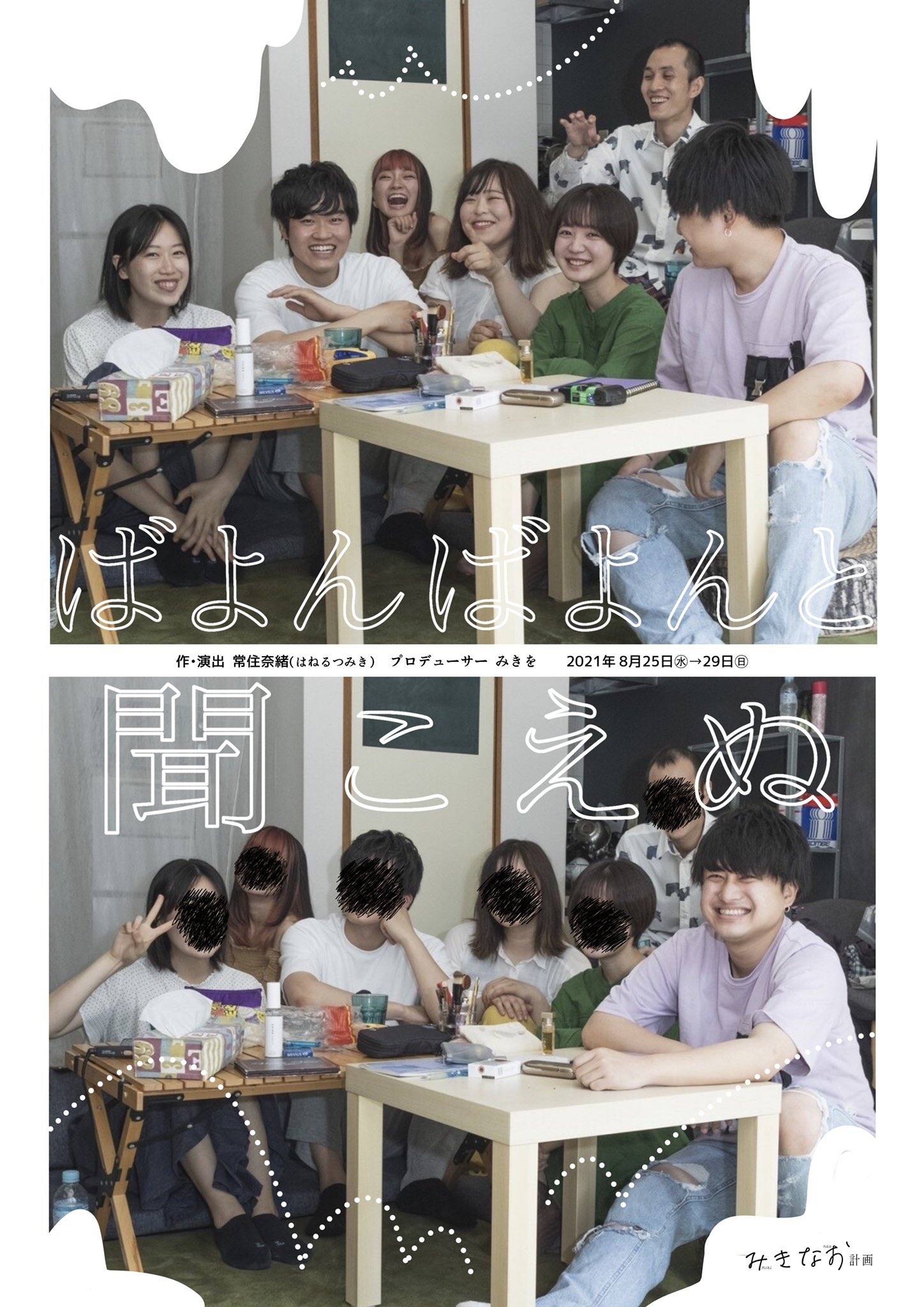 小藤琴: 今回このイベントを企画しました、「老若男女未来学園」という団体に所属しています、小藤琴です。よろしくお願いします。 普段は、宣伝美術以外にも制作や出演、演出助手などいろいろな形で演劇活動をしています。 2017年に南山大学演劇部「HI-SECO」企画に入部して、そこから演劇を始めました。 昔から絵を書くのが好きで、デザインにも興味を持っていたのがきっかけで、2年生のときに宣伝美術を始めました。 最初に作ったのは(「HI-SECO」企画の)春期公演の仮チラシですね。めちゃめちゃ大変でした。
